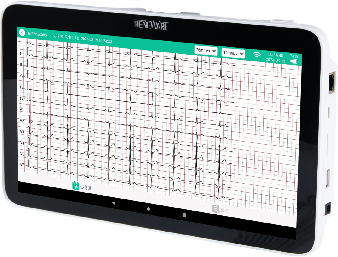 内置3.5寸触摸式彩色液晶屏,可手写输入病人基本信息,显示多导波形;在安放电极时,可实时地...